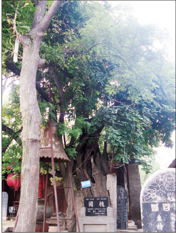 汝陽縣三屯鎮(zhèn)廣興宮有一棵國槐,國槐粗3米,高10米,樹齡800年。旁邊有一古藤,纏于國槐上,與國槐并生。