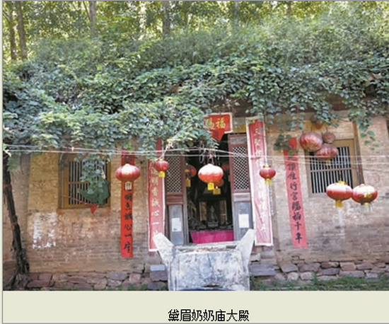 在我國的神話傳說中,有大山和大河的地方,必定有大仙。從東山底村古村落走出,沿村子中間的柏油路向北走200米,一座廟出現了。王紹祥說,這是黛眉奶奶廟,是黛眉奶奶的行宮。