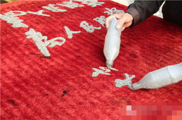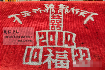5、梁老師的沙書表演,別具一格,把沙子裝在瓶子里,直接倒出各種不同的字體,雙手齊書不同的字體,同步進(jìn)行,一揮而就,形式多樣,雙手同時(shí)“正書”或同時(shí)“反書”。梁老師的作品已相繼被央視及相關(guān)媒體和海內(nèi)外知名人士收藏。