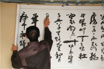 6、梁老師說:“世上無難事,只要肯登攀。在不久的將來我的書法技藝一定會(huì)更上一層樓,創(chuàng)作出更加震撼的書法絕活。”