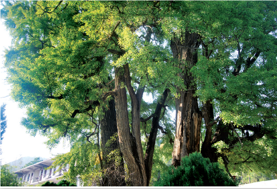 它們系兩雌株,俗稱姊妹樹,樹高35米,東株樹圍6.73米,西株樹圍6.45米,冠幅達(dá)18.5米,蒼勁挺拔,枝繁葉茂。樹的北邊有元代敕建的龍泉觀。呂洞賓曾賦詩曰:“木木林中水,山山出古人,白王皇太子,口口呂先生。”其中“木木林中水”,說的就是龍泉水從這兩棵銀杏樹中間流過。龍泉水現(xiàn)已改道。
