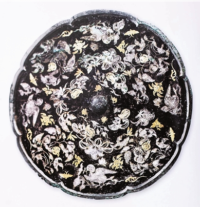 這種銅鏡流行于唐玄宗時(shí)期。唐玄宗曾命人大肆制造這種耗金費(fèi)工的貴重器物,史料中有楊貴妃賞賜金銀平脫器物給“兒子”安祿山的記載。這種驕奢淫逸的風(fēng)氣導(dǎo)致大唐王朝國(guó)力減弱,因此唐肅宗、唐代宗都曾下詔禁止制作金銀平脫器物,但屢禁不止。宋代也頒布法令,禁止民間使用金銀平脫器物,致使金銀平脫工藝一度失傳。