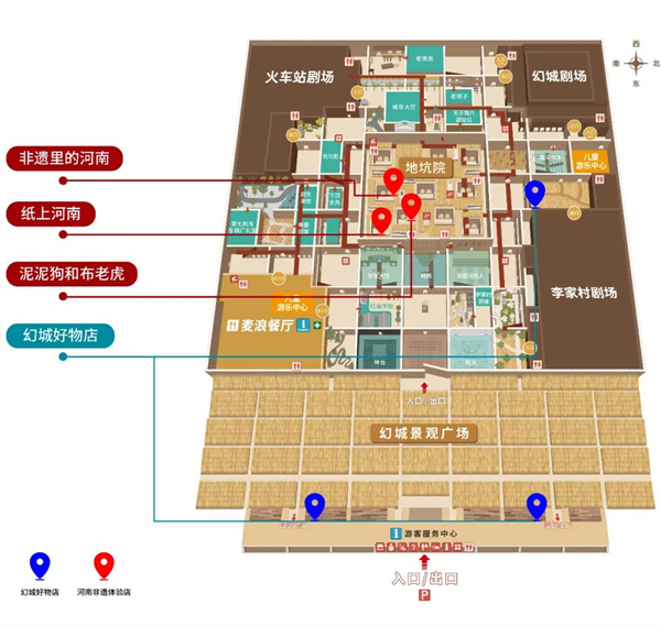 園區(qū)有著7處大大小小的幻城好物店和非遺體驗館,園區(qū)出口商店(南店、北店),和地坑院都能買到這些幻城好物。