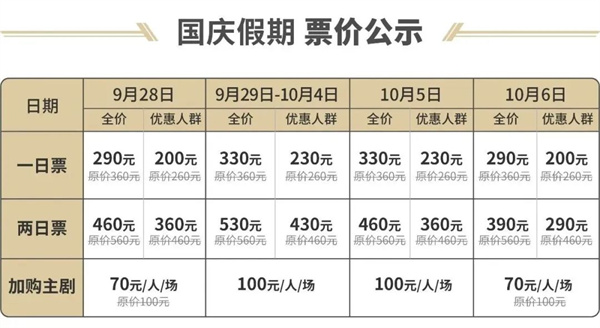 國慶8天假期實行階梯票價(詳見文末表格),如果你是河南本地人,更推薦假期第一天、第七天、第八天來,價格更優(yōu)惠,園區(qū)人更少。