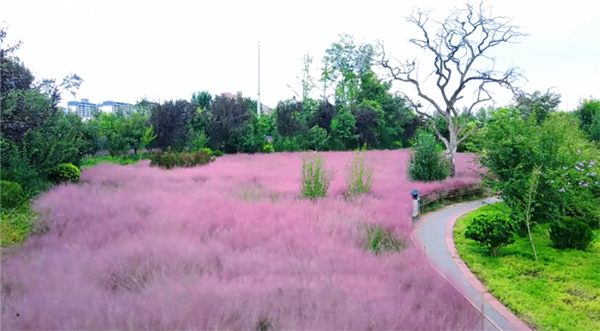 一抹嫣粉燦若霞,風(fēng)吹亂子舞青紗。雙擁主題公園內(nèi),粉黛亂子草也迎來“粉紅佳期”。是草卻如花,粉粉嫩嫩,如煙似紗。