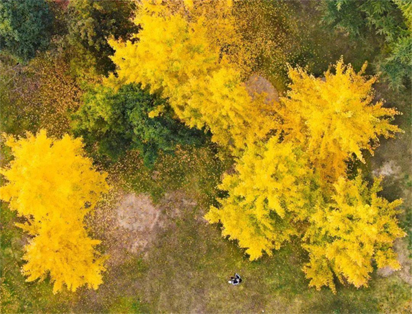 往公園中心走去,有另外一番奇景,黃色的法桐葉和金黃的銀杏,層層疊疊,不分伯仲,奏響一曲壯麗的秋之贊歌。