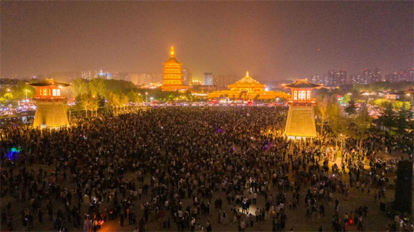 應(yīng)天門北廣場為何晚上人潮洶涌?巍峨的建筑為何光影縱橫?