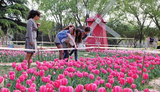 景區(qū)今年的春季大型郁金香花展將迎來米老鼠、蒙特卡羅、金帝等20多個品種近10萬株郁金香花,整個郁金香花占地10余畝。同時,景區(qū)還特意制作了3臺大型荷蘭風(fēng)車,與郁金香花展相互映襯,頗具荷蘭風(fēng)情。