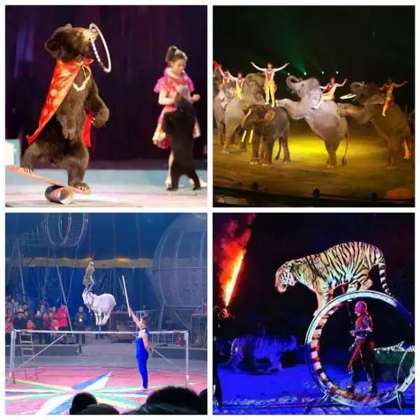 雄獅踩球、老虎鉆鋼圈、空中飛人
