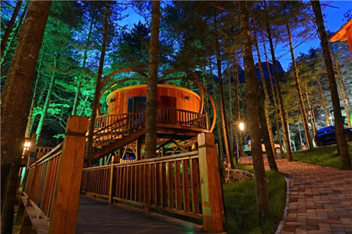 洛陽白云山森林木屋度假酒店,坐落在群山懷抱、水聲潺潺的白云山景區(qū)華山松森林氧吧內(nèi),依偎白云峰,毗鄰蘆花谷。下設(shè)6棟別墅,6棟樹屋,1棟高端會所。