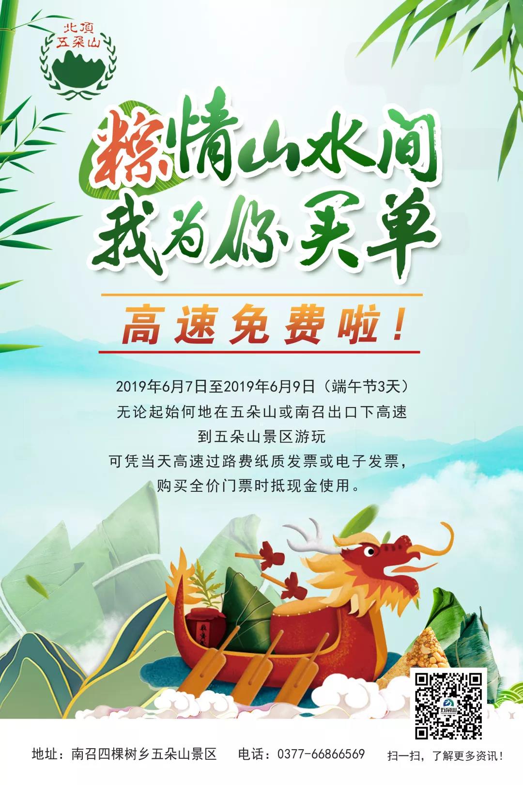 正所謂人逢佳節(jié)精神爽,南陽五朵山重磅推出門票減免的優(yōu)惠活動,2019年6月7日--6月9日(端午節(jié)3天)無論起始何地在五朵山或南召出口下高速到五朵山景區(qū)游玩可憑當(dāng)天高速過路費紙質(zhì)發(fā)票或電子發(fā)票,購買全價門票時抵現(xiàn)金使用。