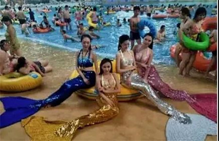 水上樂園園區(qū)內美人魚模特與游客互動,還將與游客一同體驗園內項目。