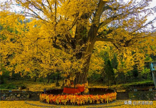 在落英繽紛的秋日里,聆聽落葉的聲音,醉入這片色彩的海洋中,一片銀杏,足以寄出所有的思念,將滿腹深情寄予這時最美的王屋山。