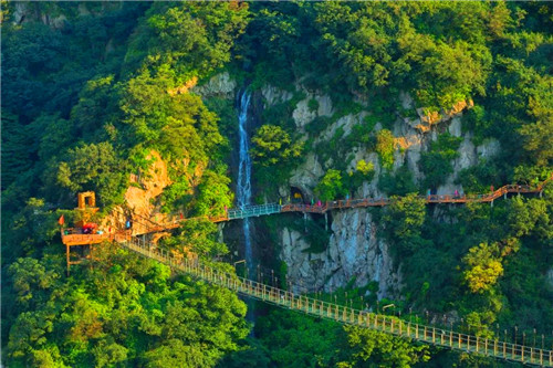 七峰山生態(tài)旅游區(qū)面積大,亮點多。徒步一天讓你看的玩的不帶重樣的,而且景區(qū)一年四季皆有值得你來的地方:春看萬畝連翹花海爭奇斗艷,夏來七彩湖水上樂園嗨翻天,秋季絕壁棧道云海登高望遠,冬季滑雪給你一場冰雪奇緣。另外還有,云頂之心、玻璃橋、楚長城遺址,民俗博物館、七彩云梯等娛樂項目給你多彩多樣的度假體驗。
