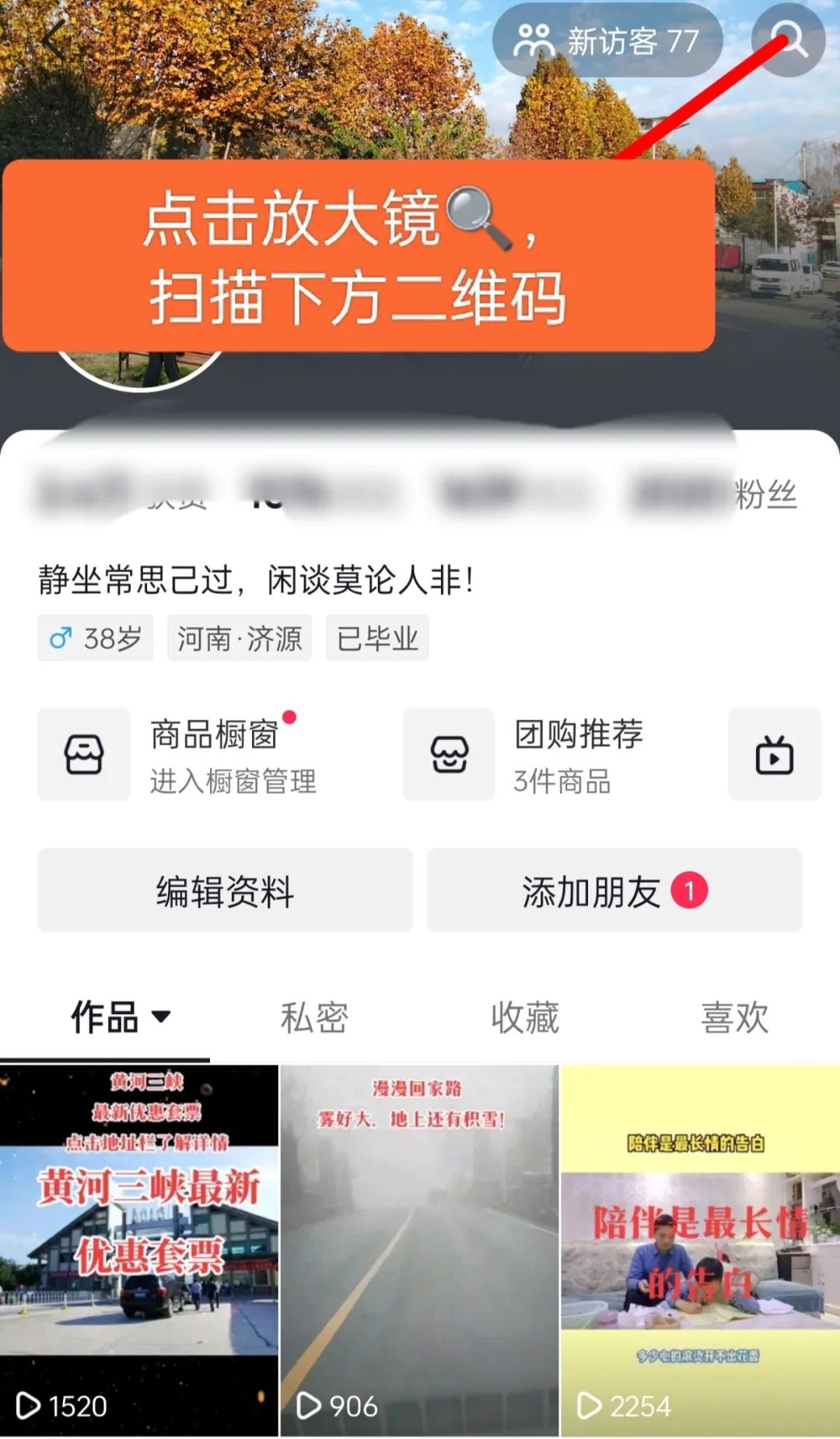 👆1.把下圖抖音二維碼保存到手機相冊或者抖音搜索小編抖音號:946170077(黃河三峽陽光)