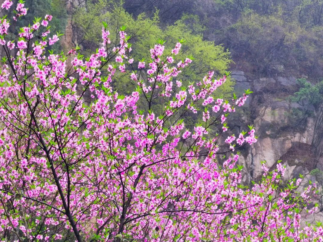 這里的桃花,是野生野長的山桃花,花瓣明亮通透,花蕊奇香撲鼻。