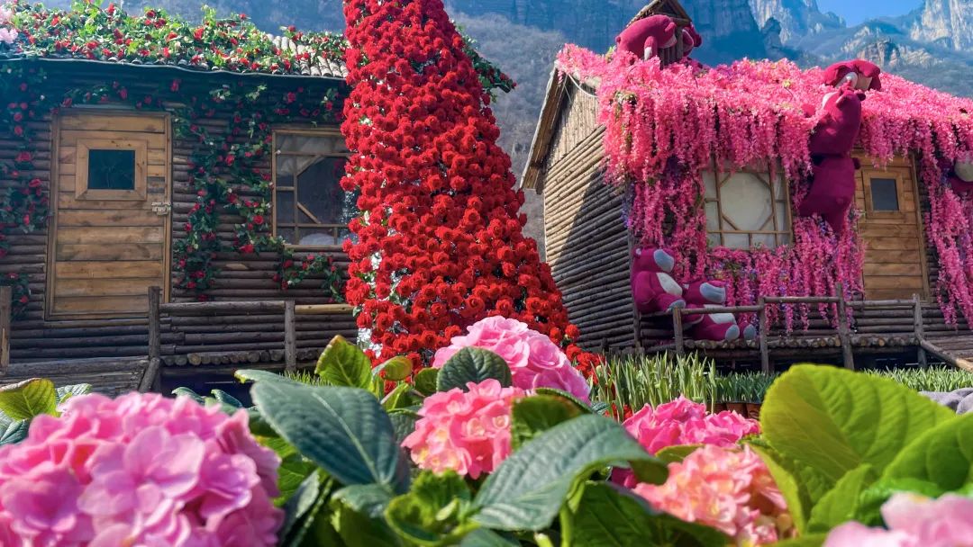 花海小屋有這個(gè)春天不能錯(cuò)過(guò)的,玫瑰瀑布、郁金香場(chǎng)景打卡等等超多好玩,郁金香花連接著天空和小木屋,這是專(zhuān)屬于春日的小浪漫呀~