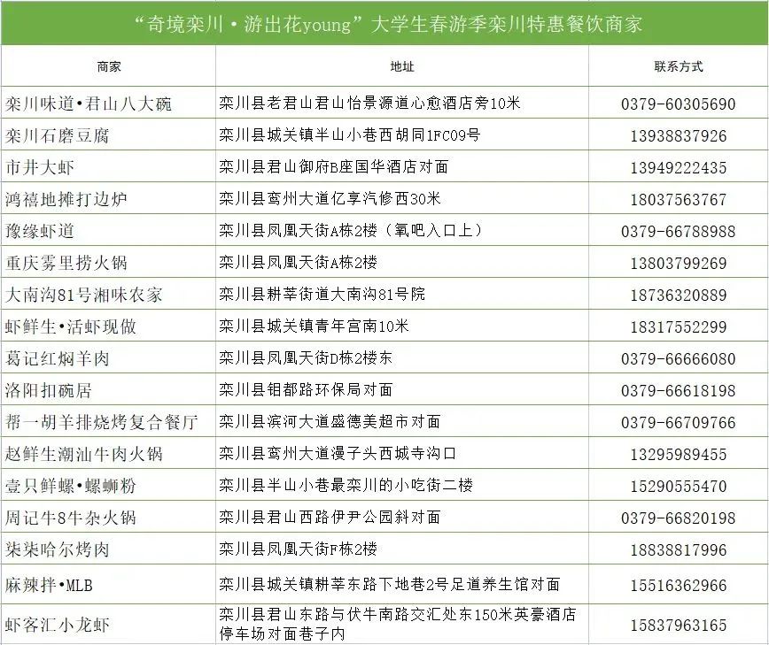 2.活動期間,“欒川文旅”官方抖音賬號推出民宿通兌券直播活動,首批10家經(jīng)濟(jì)型(149元)、10家精品型(228元)、10家輕奢型(328元)特惠民宿線上銷售,來欒大學(xué)生可通過抖音線上購買(詳情請關(guān)注“欒川文旅”抖音賬號、微信公眾號)。