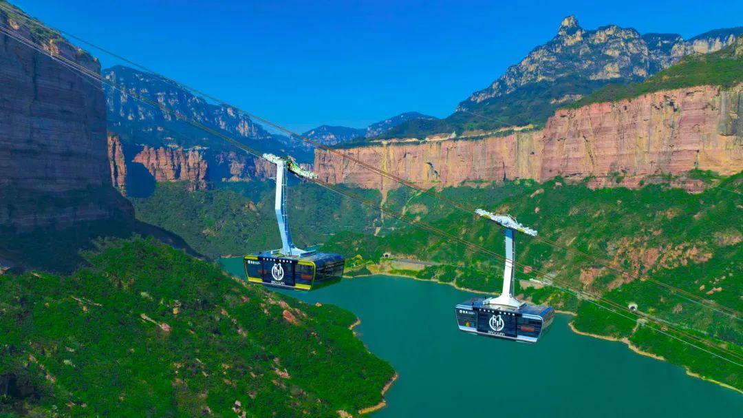 全長1100米,落差334米的洛伽寺索道橫跨400米寶泉湖,搭配可載客200人的單體單層吊箱,運行途中寶泉壯美的曲峽景觀盡收眼底。