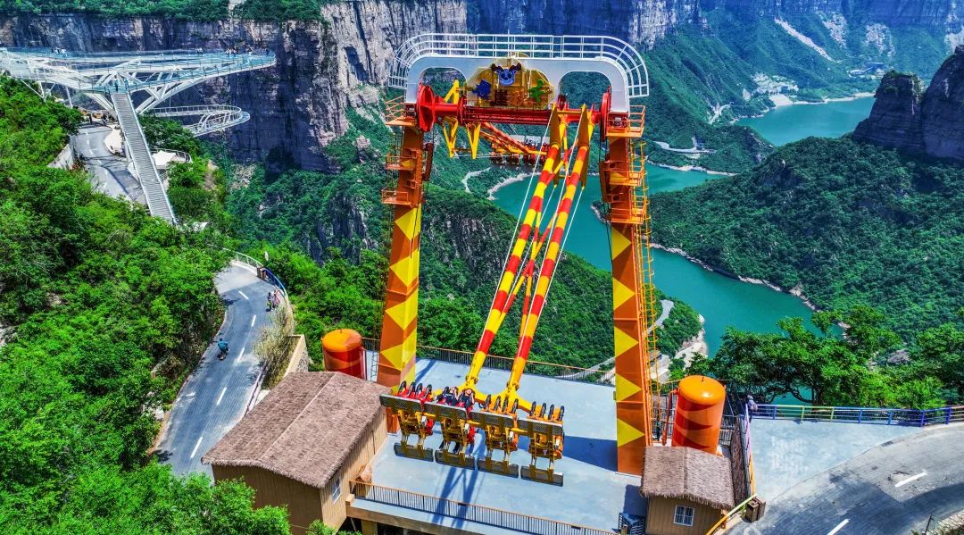 乘坐懸崖秋千,蕩漾在懸崖之上,俯瞰峽谷全貌,一覽太行盛景,270°環(huán)顧腳下美景。