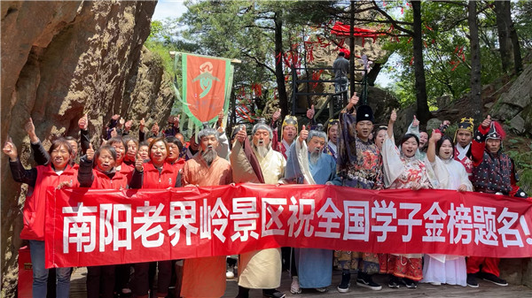 近日,河南南陽老界嶺景區(qū)以傳統(tǒng)方式為全國高考考生祈福加油。景區(qū)員工穿上漢服,在景區(qū)內(nèi)的金榜題名石、狀元橋等景點,懸掛祈福帶、條幅,為全國考生加油、祝福。據(jù)老界嶺景區(qū)負責人介紹,6月9日-8月31日期間,2023年應(yīng)屆畢業(yè)的中、高考學生,憑本人準考證免老界嶺景區(qū)門票(不含景區(qū)交通和二消項目)。