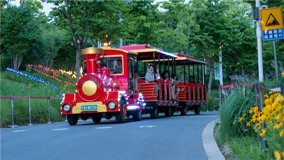 柔美燈光勾勒出亭臺樓閣的精雕細琢,婆娑樹影渲染出園博園的悠然愜意。帶著娃在湖邊走走,喂喂湖里的天鵝和鯉魚,或是乘著晃晃悠悠的小火車,領略夏日夜景與浪漫氣息。