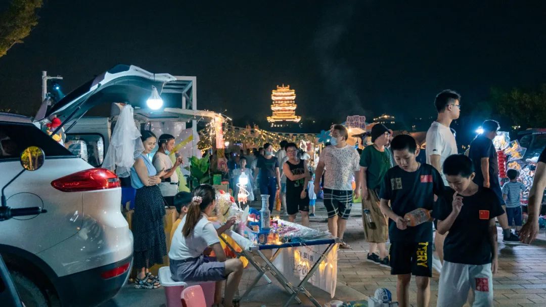 輕食小吃、甜品飲料、手工文創(chuàng)、潮玩雜貨,一應俱全。伴著繾綣夜色,吹著柔柔晚風,在市集上品嘗香氣四溢的小食,亦或是開啟淘寶挖金帶來的快樂。