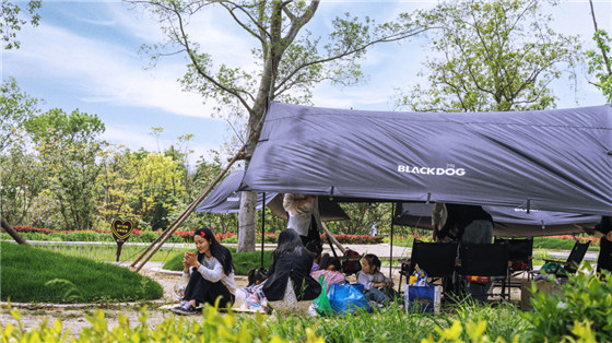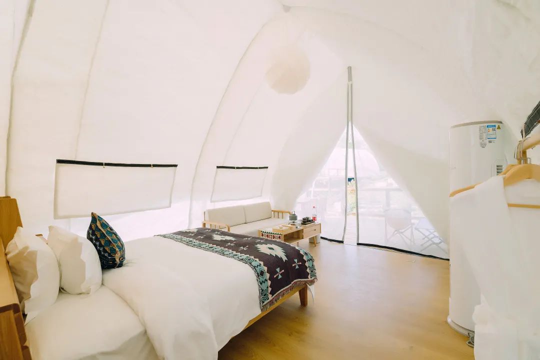 溪上露營地在園中臨溪而生,營地提供聽風、花開、星空3大主題帳篷供不同人群選擇,帳篷內配備空調、冰箱等家電及獨立衛(wèi)浴,帶來媲美星級酒店的住宿體驗。