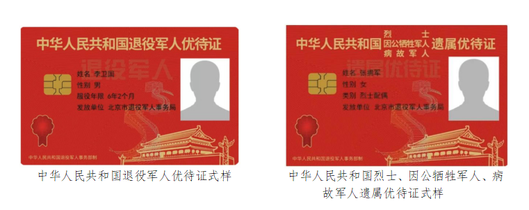 優(yōu)待對象為持有《中華人民共和國退役軍人優(yōu)待證》《中華人民共和國烈士、因公犧牲軍人、病故軍人遺屬優(yōu)待證》的人員。