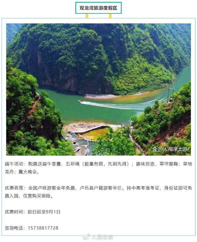 【惠旅游】全國中高考學(xué)生,憑準(zhǔn)考證免門票游雙龍灣旅游度假區(qū)!