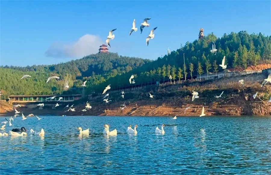 你可以沿著江畔的高空棧道漫步,感受徐徐江風撲面而來,欣賞江畔的浪漫風光,享受這份來自大自然的饋贈。另外,一定要到佛緣度橋,看那成千上萬的海鷗嬉戲!