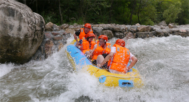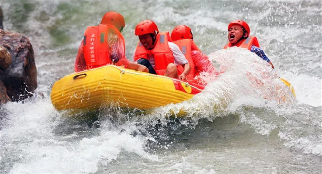 漂流河道依山勢而建,河道隨山勢而走,高低起伏,這里的河水,時而急流險灘,時而水面平緩,乘船行于其上,沿途青松環(huán)繞,綠蔭夾道,野花幽香,沿岸風(fēng)光美不勝收,滿足視覺享受。