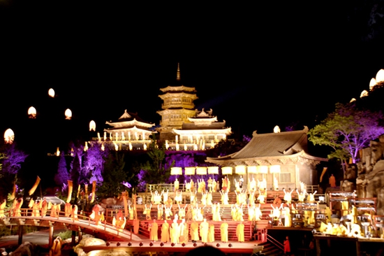 《禪宗少林·音樂大典》實(shí)景演出,是目前世界上最大,也是目前國內(nèi)唯一一臺以解讀中國傳統(tǒng)文化精神內(nèi)核為內(nèi)容的實(shí)景演出項(xiàng)目。演出以風(fēng)景如畫的嵩山為背景,利用世界最先進(jìn)的聲光電技術(shù),生動地描述了山澗風(fēng)景、雪夜古剎、月照塔林、頌禪法會、溪山坐禪、少林拳棍、女童牧歸等情景。項(xiàng)目得到了世界各國友人和社會各界的認(rèn)可和稱贊,先后獲得了“國家文化產(chǎn)業(yè)示范基地”、“國家文化旅游重點(diǎn)項(xiàng)目”、“中國創(chuàng)意城市文化名片”等諸多國家級及省、市榮譽(yù),并入選了“河南省重點(diǎn)上市后備企業(yè)”,成為了中原文化與旅游產(chǎn)業(yè)發(fā)展的典范。