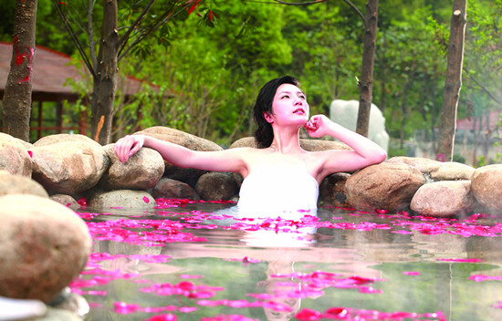 江南春溫泉共有室內(nèi)外溫泉湯池90余個(gè), 可同時(shí)容納2000余人泡溫泉,由江南早春、夜醉江南、江南秋色、情暖江南四個(gè)區(qū)域組成。