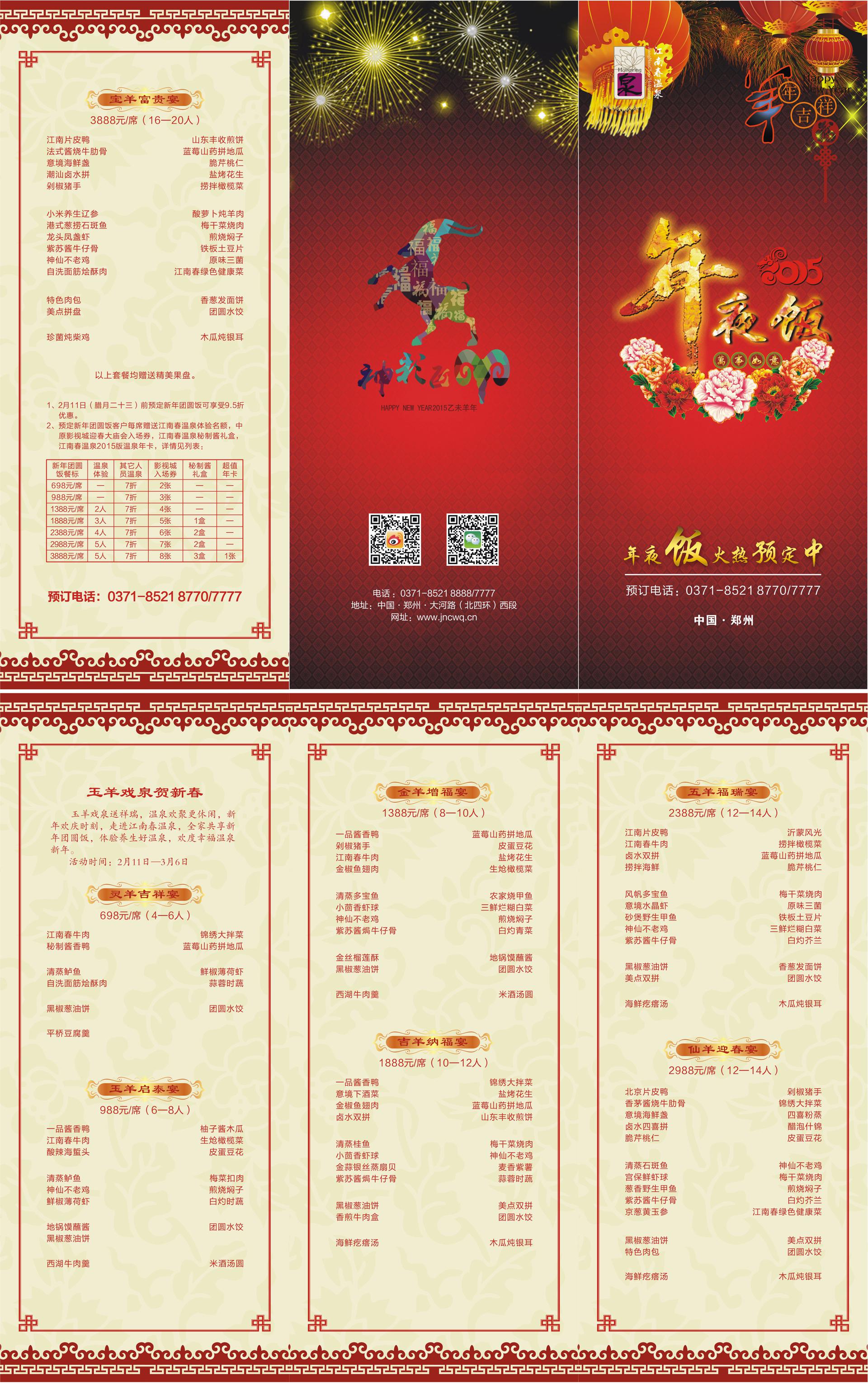 江南春年夜飯698元-3888元不等,預訂年夜飯還可以享受送溫泉年卡、溫泉票、中原影視城廟會門票等禮品的驚喜哦!今年春節(jié),就到江南春溫泉,享四星級度假休閑,到中原影視城參加迎春大廟會,傳統(tǒng)秧歌、舞獅、舞龍、劃旱船等曲藝互動將走到您身邊,讓您真正感受到都市生活淡忘了的年味記憶。詳詢:0371-85218888