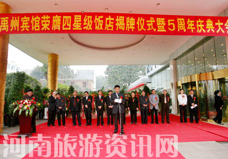10月18日上午,禹州市禹州賓館正式榮膺四星級旅游飯店揭牌儀式暨開業(yè)五周年慶典活動在該賓館隆重舉行。省旅游局副局長李亞白出席了授牌、揭牌儀式。