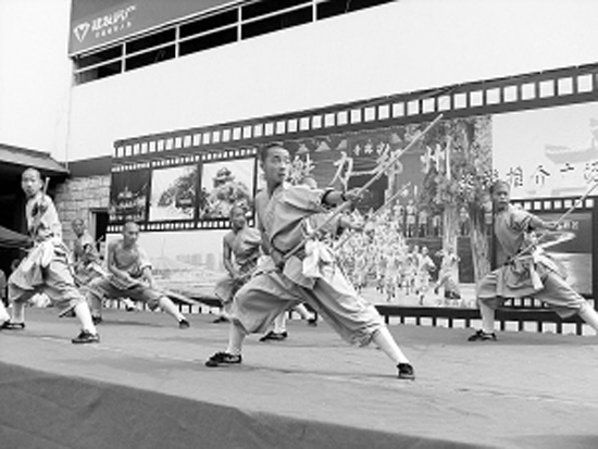 昨日,榕城福州迎來了一群特殊客人,他們是“魅力鄭州”旅游推介團的30多名成員。在當?shù)胤比A地段沃爾瑪超市廣場門口,一場場精彩的少林功夫表演,一段段精彩幽默的講解引來眾多福州市民陣陣喝彩。不少市民踴躍上臺,現(xiàn)場拜“少林小子”們?yōu)閹,當場打起少林拳。不少福州市民還踴躍領取鄭州旅游宣傳資料,認真了解鄭州豐富的旅游資源。