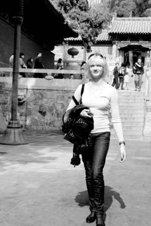 昨日上午,少林寺大雄寶殿前,一位金發(fā)碧眼的俄羅斯美女雙手合十、接連跪拜,引得眾人圍觀。眼尖的游客一眼就認(rèn)出了她——世界著名體操運(yùn)動員霍爾金娜。以俄羅斯國家杜馬體育、運(yùn)動和青年事務(wù)委員會副主席、杜馬議員亞歷山德拉·布拉塔耶娃為團(tuán)長的俄羅斯奧運(yùn)冠軍代表團(tuán)一行10人,于24日晚抵鄭,開始對河南的友好訪問,霍爾金娜是其中的一員。 霍爾金娜說將來要讓兒子學(xué)武術(shù)