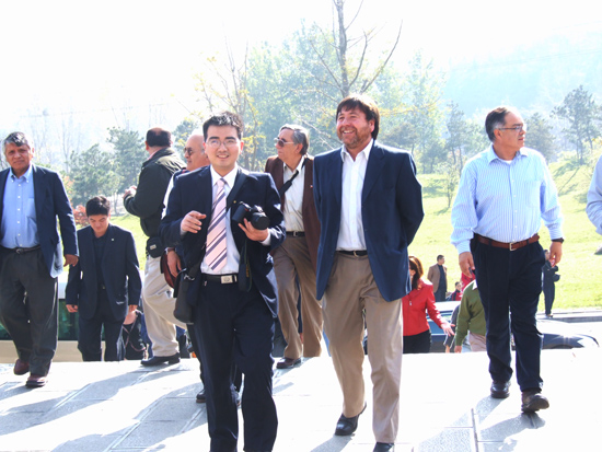 11月3日上午,智利第四行政大區(qū)行政長官卡多·西富恩特斯·里里奧先生率該區(qū)政府暨經(jīng)貿(mào)代表團(tuán)一行24人到少林景區(qū)參觀考察,并觀看武術(shù)館少林功夫表演。 為營造濃厚的武術(shù)文化氛圍,武術(shù)館在展示少林功夫的同時,增設(shè)了互動項目,在演出中場,西富恩特斯先生的隨從人員便現(xiàn)場認(rèn)真地向少林弟子學(xué)起少林功夫來,引起場下陣陣掌聲。腹臥鋼叉、五槍刺身、象形拳等精彩的節(jié)目贏得西富恩特斯先生一行的高度評價,演出結(jié)束后登上舞臺親切慰問表演隊員,并一一與隊員合影留念。 第四行政大區(qū)位于智利北中部,是最早有人居住的地區(qū)之一,經(jīng)濟(jì)以農(nóng)牧業(yè)和礦業(yè)為主。本次西富恩特斯先生率團(tuán)來訪,旨在拜會河南省領(lǐng)導(dǎo),簽署建立友好省區(qū)關(guān)系協(xié)議書,參觀我省有關(guān)部門及企業(yè),探討同我省在銅礦開發(fā)、農(nóng)業(yè)、機(jī)械、教育等領(lǐng)域開展實(shí)質(zhì)性合作事宜。 |