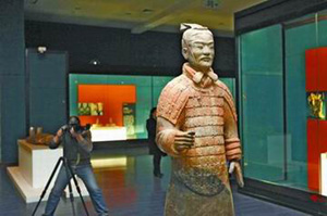 據(jù)介紹,為了滿足群眾和兵馬俑照相的需要,河南博物院專門制作了兵馬俑的模型,觀眾可以搖身變成“兵馬俑”,過(guò)一次“兵馬俑”癮。