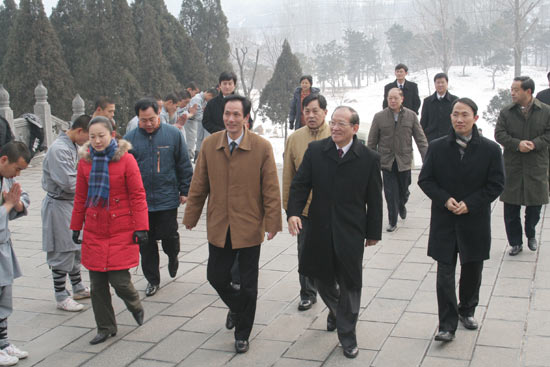 數(shù)九寒天,少林景區(qū)雪花飄飛,銀裝素裹,游客個個全副棉裝。與之形成鮮明對比的是,演武廳內(nèi)表演隊員們赤膊上陣,十八般兵器、硬氣功、象形拳、童子功等精彩的節(jié)目將少林功夫“秀如貓,斗如虎,行如龍,動如風(fēng),聲如雷”的特點充分展示出來,贏得來賓的陣陣掌聲,現(xiàn)場氣氛異常熱烈。