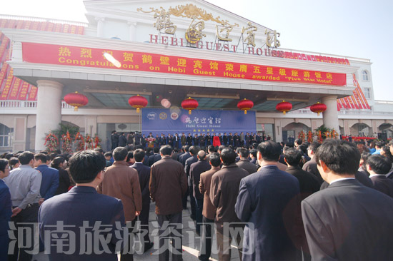 2月28日上午,鶴壁迎賓館五星級(jí)揭牌儀式隆重舉行,標(biāo)志著我省省會(huì)以外首家五星級(jí)旅游飯店正式掛牌。省人大原副主任張以祥,省人民政府副秘書(shū)長(zhǎng)王春生,省旅游局局長(zhǎng)楊盛道、副局長(zhǎng)李亞白,以及鶴壁市有關(guān)領(lǐng)導(dǎo)出席了揭牌儀式。省旅游局局長(zhǎng)楊盛道與中原煤化集團(tuán)董事局主席李永新共同為鶴壁迎賓館榮膺五星級(jí)旅游飯店揭牌。