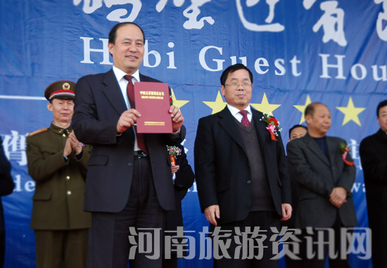 楊盛道局長(zhǎng)與李永新主席為鶴壁迎賓館五星級(jí)旅游飯店揭牌