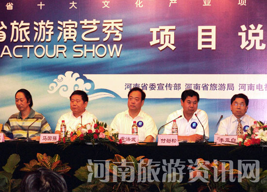中共河南省委宣傳部常法武副部長、河南省旅游局李亞白副局長、河南省政府外事辦付勁松副主任、河南省廣電局馬國強(qiáng)副局長、河南電視臺周紹成臺長、河南電視臺王仁海副臺長等領(lǐng)導(dǎo)出席項(xiàng)目說明會并作講話,表達(dá)了對河南旅游演藝秀項(xiàng)目的關(guān)切和支持。
