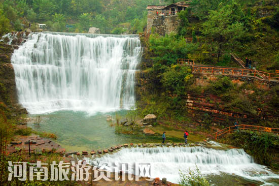 近日,國家重點(diǎn)風(fēng)景名勝區(qū)河南林州太行大峽谷景區(qū),由于雨量充沛,峽谷內(nèi)泉水四溢,溪水潺潺,空氣清新,群山蒼翠。崖前瀑布隨處可見,兩條、三條不勝其多,流光溢彩,熠熠生輝,似飛練,如銀河。露水河蜿蜒而過,川流不息,水天一色,疑似水鄉(xiāng)江南。山無水不靈,水無山不秀,山水奏響的和諧樂章震憾了每一位游客。