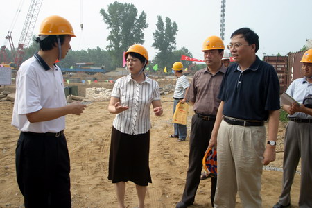孔玉芳一行頂著酷暑來到位于鄭州市鄭花路北段的河南省旅游演藝秀建設工地現(xiàn)場,邊走邊聽取施工單位負責人介紹工程的進展情況,并叮囑施工單位要把工程質量放到首位。河南省旅游演藝秀是我省十大文化產業(yè)項目之一,是以中原文化為背景創(chuàng)意制作的劇場式舞臺劇精品項目,劇場座位792個,建筑面積達12800平方米,工程于6月6日正式開工,現(xiàn)已完成了基礎施工和鋼結構制作,預計9月份主體完工。