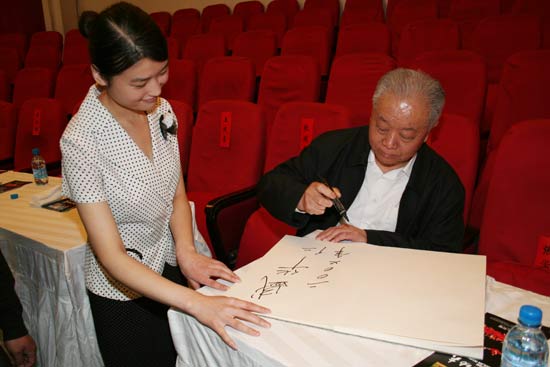 精彩的功夫表演給盛華仁一行留下深刻的印象,表演結(jié)束后,高興地登上舞臺慰問表演隊員,并與表演隊員合影,為武術(shù)館簽名留念。