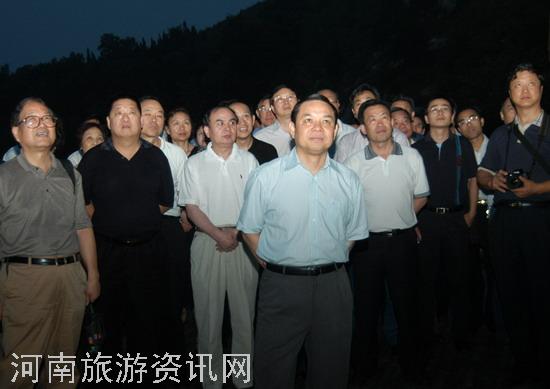 根據(jù)省委主要領(lǐng)導(dǎo)的指示精神,6月15日晚,省委常委、常務(wù)副省長(zhǎng)李克率領(lǐng)中國(guó)共產(chǎn)黨河南省代表大會(huì)的代表和省人大、省政協(xié)各專業(yè)委員會(huì)的主任、副主任共130余人一起觀看了《禪宗少林·音樂大典》大型實(shí)景演出。省旅游局局長(zhǎng)楊盛道,副局長(zhǎng)鄒文珠、李亞白,紀(jì)檢組長(zhǎng)周保建等陪同觀看了演出。 演出前,領(lǐng)導(dǎo)們首先察看了《禪宗少林·音樂大典》實(shí)景演出場(chǎng)地和設(shè)施。總導(dǎo)演梅帥元向領(lǐng)導(dǎo)們簡(jiǎn)單介紹了《禪宗少林·音樂大典》的創(chuàng)作過程和演出情況。 省旅游局局長(zhǎng)楊盛道詳細(xì)詢問了演員們的演出情況并對(duì)他們精彩的演出給予了高度評(píng)價(jià)。一位參與演出的當(dāng)?shù)乩相l(xiāng)高興的對(duì)楊盛道局長(zhǎng)說:“《禪宗少林·音樂大典》旅游項(xiàng)目,給我們待仙溝聚集了靈氣,帶了人氣,讓我們老百姓實(shí)實(shí)在在感受到了旅游帶來的好處。我們參與演出不是為了錢,而是想為吸引更多的游客到待仙溝來做點(diǎn)貢獻(xiàn)!”