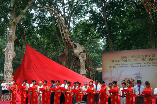 7月3日,一則消息震動了海內(nèi)外古生物學界:河南汝陽、欒川一帶驚現(xiàn)白堊紀恐龍化石群! 這個新發(fā)現(xiàn)所公布的每一項研究成果,都無疑是投向我國古生物學界的一顆顆重磅炸彈—— 新出土的汝陽黃河巨龍,個體長度有18米,體重達60噸,相當于10頭大象,是亞洲目前已知的最高大、最肥胖的恐龍;未命名的小竊蛋龍體長不足0.6米,是世界上見到的最小的恐龍。 洛陽中原龍,是我國目前為止唯一發(fā)現(xiàn)、有確鑿證據(jù)的大型結(jié)節(jié)龍類甲龍,推翻了中國無結(jié)節(jié)龍的結(jié)論。 欒川盜龍馳龍類標本的發(fā)現(xiàn),是亞洲除蒙古及我國東北之外發(fā)現(xiàn)的第一個標本…… 經(jīng)專家們共同研究和確認,汝陽、欒川化石群至少有12種以上的恐龍種類。 冰山才露出一角 那具亞洲最高大、最肥胖的恐龍化石,出土時為一具近乎完整的骨架,但前半部分已被作為“龍骨”而采挖殆盡。董枝明不禁感嘆:“如果發(fā)掘工作再提前10年,我們會得到一個多么完美的化石!” 盡管感到遺憾,但董枝明仍然對以后的研究和發(fā)掘抱有厚望。因為在已發(fā)現(xiàn)的恐龍化石點中,汝陽有30余處,目前僅搶救性發(fā)掘了5處;欒川有20余處,目前僅搶救性發(fā)掘了2處,但所取得的成果,已足以在國內(nèi)外古生物學界引起轟動。 董枝明認為,僅僅從目前已發(fā)現(xiàn)、但還有待于認真研究的恐龍化石中,就蘊藏著一些更大的發(fā)現(xiàn)。比如此次出土于汝陽縣劉店鄉(xiāng)3號化石點、尚未命名的巨型蜥腳類恐龍,股骨復(fù)原后長約2.35米,其綜合特征不同于汝陽黃河巨龍,為一未知的巨型蜥腳類恐龍,在整體研究復(fù)原后,有望取代汝陽黃河巨龍,成為亞洲第一巨龍。 轟動世界的南陽恐龍蛋化石發(fā)現(xiàn)之后,我省一直沒有發(fā)現(xiàn)相應(yīng)的恐龍化石,以致有專家戲言,恐龍在南陽下蛋之后,就跑到別的地方去生活了。但此次恐龍化石群的發(fā)現(xiàn),對汝陽盆地、潭頭盆地的地層時代歸屬進行了重新厘定,汝陽盆地應(yīng)屬晚白堊紀早期,潭頭盆地應(yīng)屬晚白堊紀,表明該區(qū)當時氣候濕潤,植物茂盛,生存環(huán)境優(yōu)越。因此,河南豐富的恐龍化石群,將為我國與世界研究地球、生命,特別是研究恐龍絕滅和災(zāi)變事件,提供大量的科學信息。 讓人真正感興趣的是,該區(qū)到底有多少種恐龍?都是些什么恐龍?以后的發(fā)掘和研究還會給人們帶來哪些令人激動的新發(fā)現(xiàn)?董枝明認為,研究和發(fā)掘工作僅僅邁出了第一步,目前還難以充分估計。但可以肯定的是,由于汝陽、欒川一帶處于秦嶺東部,河南沿秦嶺一帶地區(qū)直至陜西南部,都可能存在密集的恐龍化石群。 尤其值得一提的是,汝陽、欒川地區(qū)多處大型肉食龍類恐龍牙齒的發(fā)現(xiàn),表明本區(qū)肯定存在大型肉食龍類骨骼化石。而我國至今還沒有發(fā)現(xiàn)較為完整的大型肉食龍類骨骼化石,全世界也僅有美國有較為完整的霸王龍和蒙古的暴龍。因此,一旦大型肉食龍類骨骼化石被發(fā)現(xiàn),其影響巨大。 河南恐龍化石群的發(fā)掘與研究,僅僅是露出了冰山一角。 除了科學意義,旅游是人們想到最多的 7月1日,面對著眾多中外專家,汝陽縣委書記李雪峰宣布,汝陽縣將在恐龍化石群附近劃定一個方圓100平方公里的恐龍自然保護區(qū),以帶動當?shù)芈糜魏徒?jīng)濟發(fā)展。