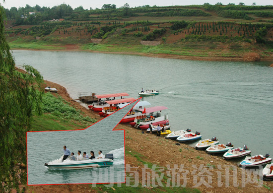 7月6日傍晚六時許,記者采訪途中偶而在嵩縣陸渾湖看到,一艘快艇飛馳出港,在寬達5公里、最深處達40多米,碧波蕩漾的湖面上馳騁,小循環(huán),大回轉(zhuǎn),駕駛員高超的駕技,激起浪花翻騰,刺激迭起,持續(xù)時長大約20分鐘左右。然而記者驚愕發(fā)現(xiàn),全船乘員竟無一人穿著救生衣,頓覺心驚膽顫。當(dāng)快艇靠岸后,記者發(fā)現(xiàn),游艇上共有七人,除駕駛員外,估計其他均為游客。記者還發(fā)現(xiàn),碼頭共停靠快艇十艘,普通游船四艘,摩托艇若干。而整個碼頭,記者也僅看到寥寥幾個救生衣。在如此寬闊的水面上,沒有安全措施的旅游,萬一發(fā)生事故……